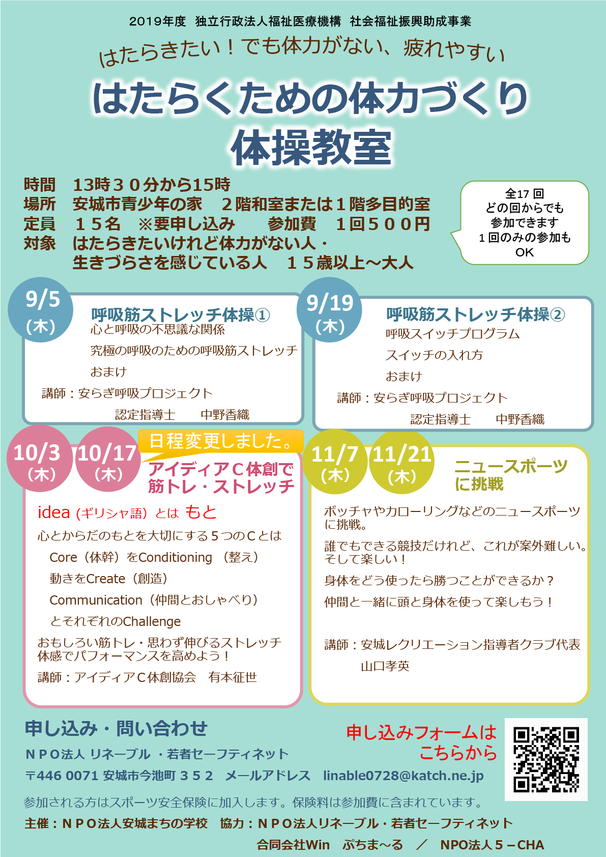 参加予定日にチェック 9/59/1910/310/1711/711/21 以降、3月末まで月に2回開催予定。以降の日程は、決まり次第HPにてご連絡いたします。 欠席の場合は、前日までにメールにてご連絡下さい